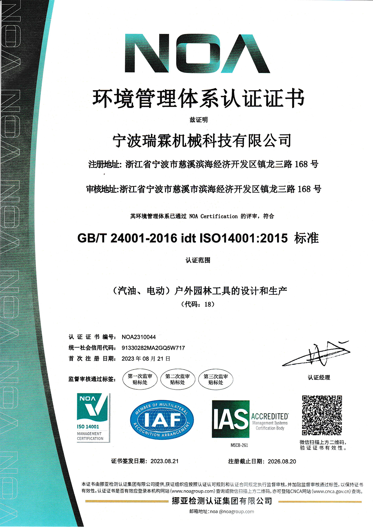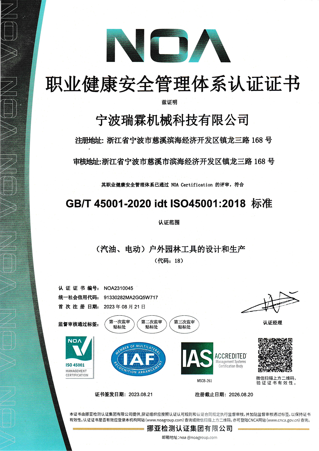 宁波瑞霖机械科技有限公司(简称NGP)是U8·(中国)手机网页版的全资子公司,成立于2019年4月,位于浙江省慈溪滨海经济开发区镇龙三路168号,占地面积约50000平方米。公司拥有雄厚的技术力量和先进的生产设备,是行业内规模最大的企业之一。NGP集产品设计、开发、生产、销售和服务于一体,主要从事各类汽油、割草机、修枝机、打草机、链锯、吹风机等园林工具的设计研发和制造,产品远销欧洲、美洲、大洋洲等多个国家和地区,同时内销全国各地。作为国家知识产权优势企业,公司注重产品设计,并在此基础上采用先进的精益生产方式,以7S活动规范现场管理,以量身打造的ERP系统整合及有效利用企业资源,以ISO 9001:2015等标准来完善公司质量管理体系,并通过“GS”、“EMC”、“CE”、“UL”等认证来确保产品的安全性和可靠性,已取得各地区出口许可证和自营进出口权。